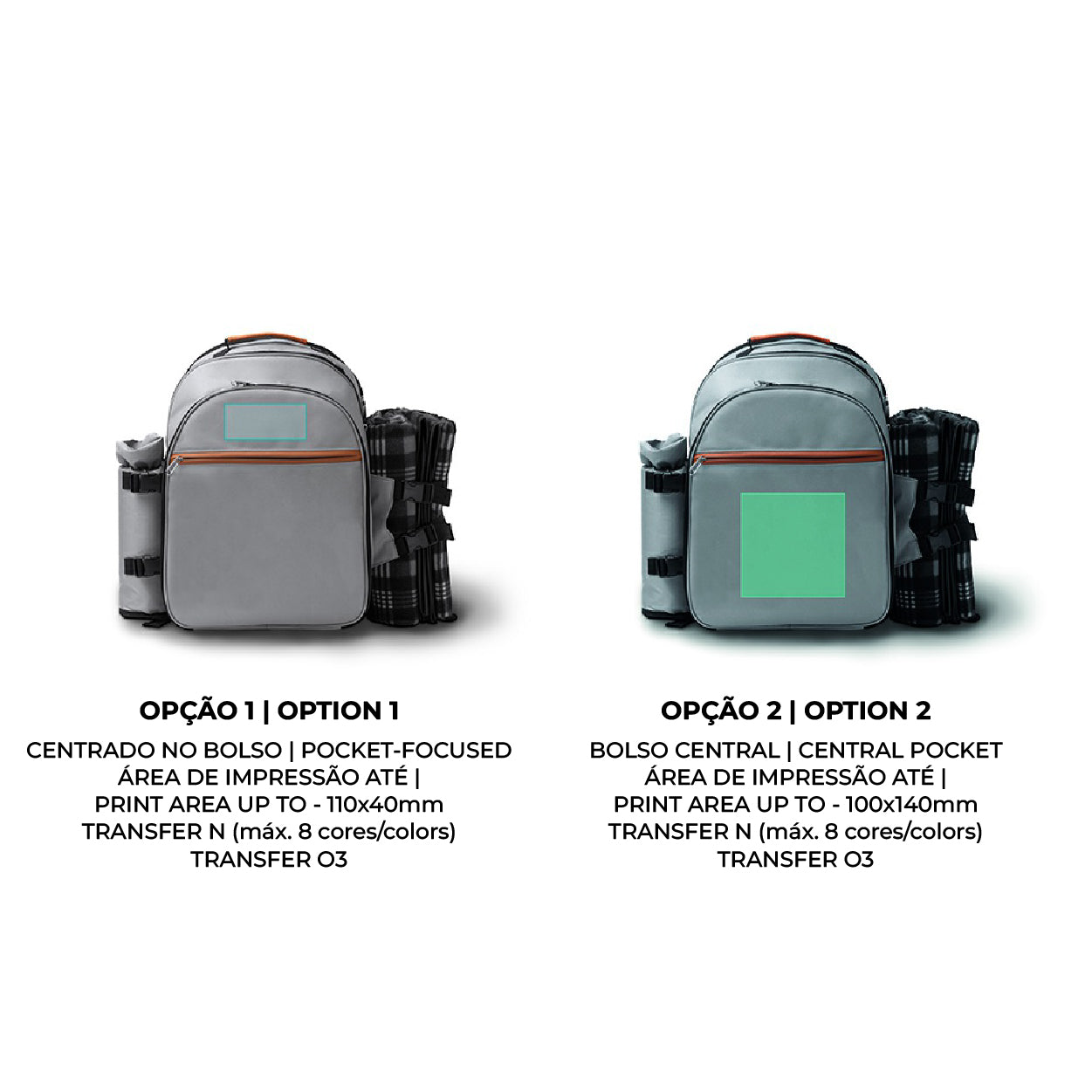 Esta mochila é fabricada em poliéster RPET, um material reciclado de elevada durabilidade que reforça o seu compromisso ambiental. O design da mochila concentra-se na organização de todos os elementos essenciais para uma refeição de campo.