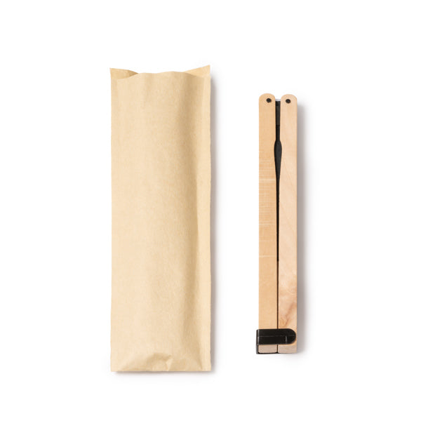 O paipai possui um sistema dobrável, tornando-o extremamente fácil de transportar e guardar na bolsa ou no bolso. As suas varas de madeira conferem-lhe um aspeto mais sofisticado e uma sensação tátil superior em comparação com o plástico, além de serem uma opção mais sustentável.