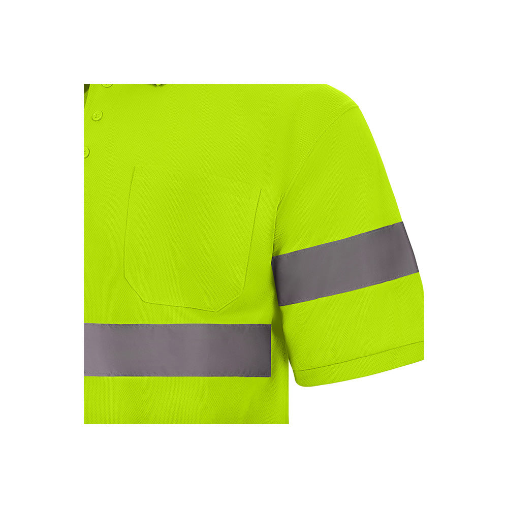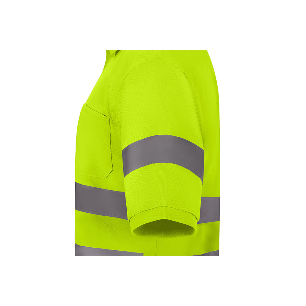 A elegância do polo com a performance da alta visibilidade. O Fraga é um polo de manga curta desenhado para profissionais que operam em ambientes de risco e necessitam de uma peça leve, respirável e altamente funcional. Fabricado no avançado tecido Bird-Eye (100% poliéster) de 140 g/m², a sua estrutura alveolar permite uma ventilação constante, garantindo que o utilizador se mantém fresco e seco mesmo em jornadas de calor intenso ou elevado esforço físico.