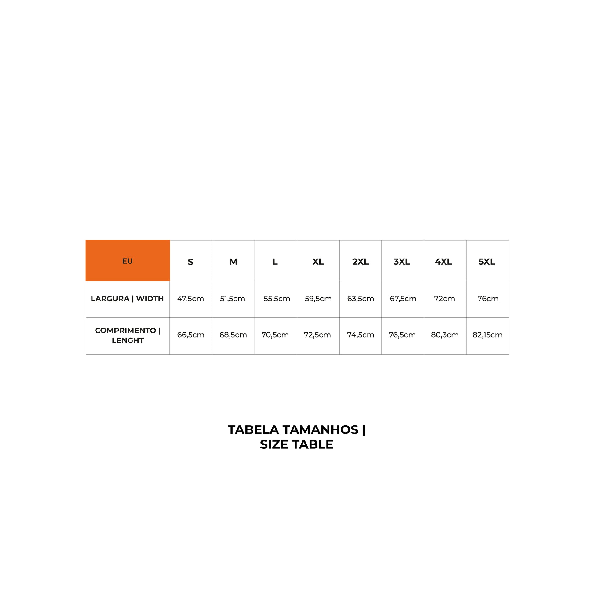 Tamanhos Adulto | S, M, L, XL, 2XL, 3XL, 4XL, 5XL.