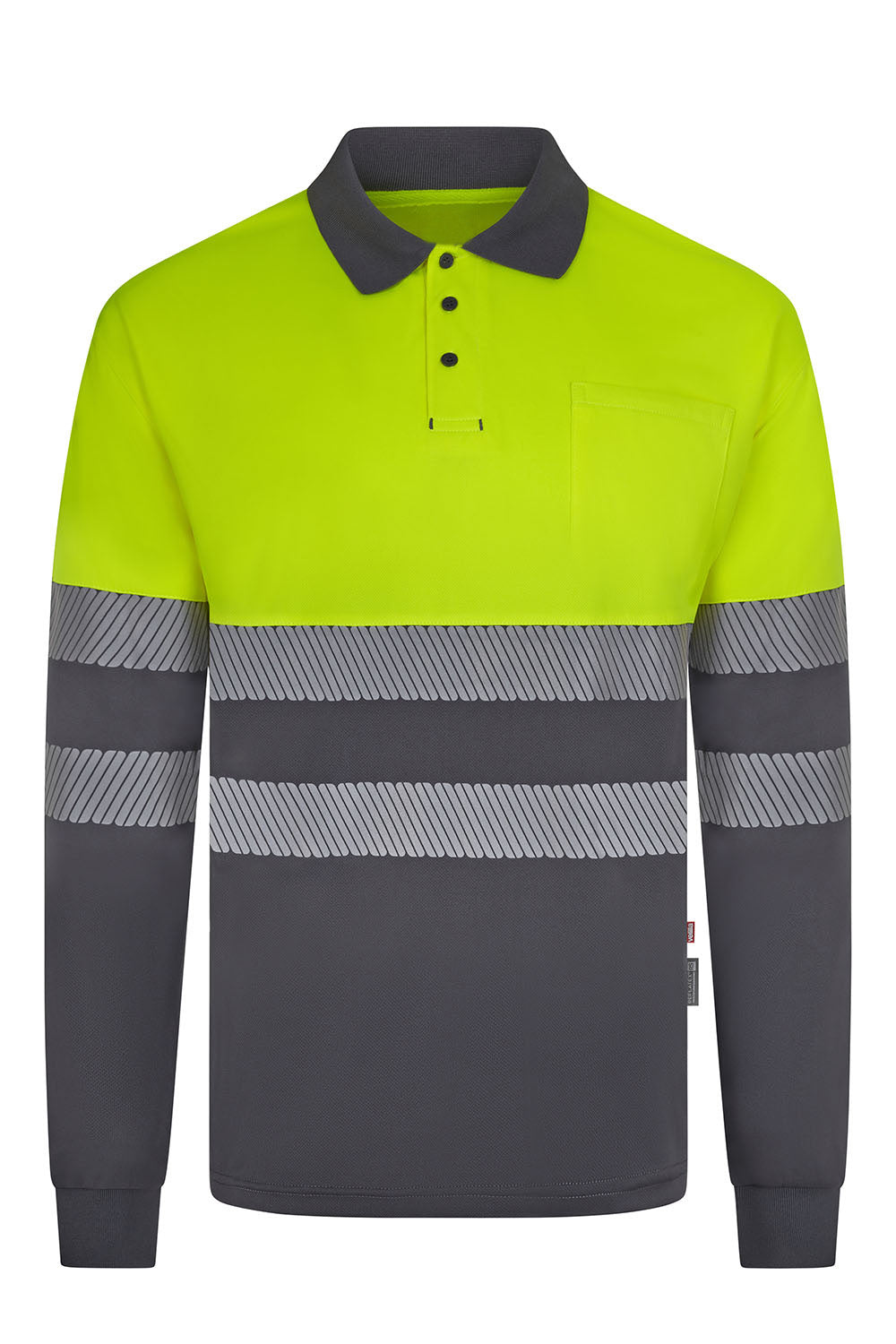 - Certificação EN ISO 20471 (Classe 1): Adequado para ambientes de risco moderado, garantindo visibilidade com um design bicolor moderno.
