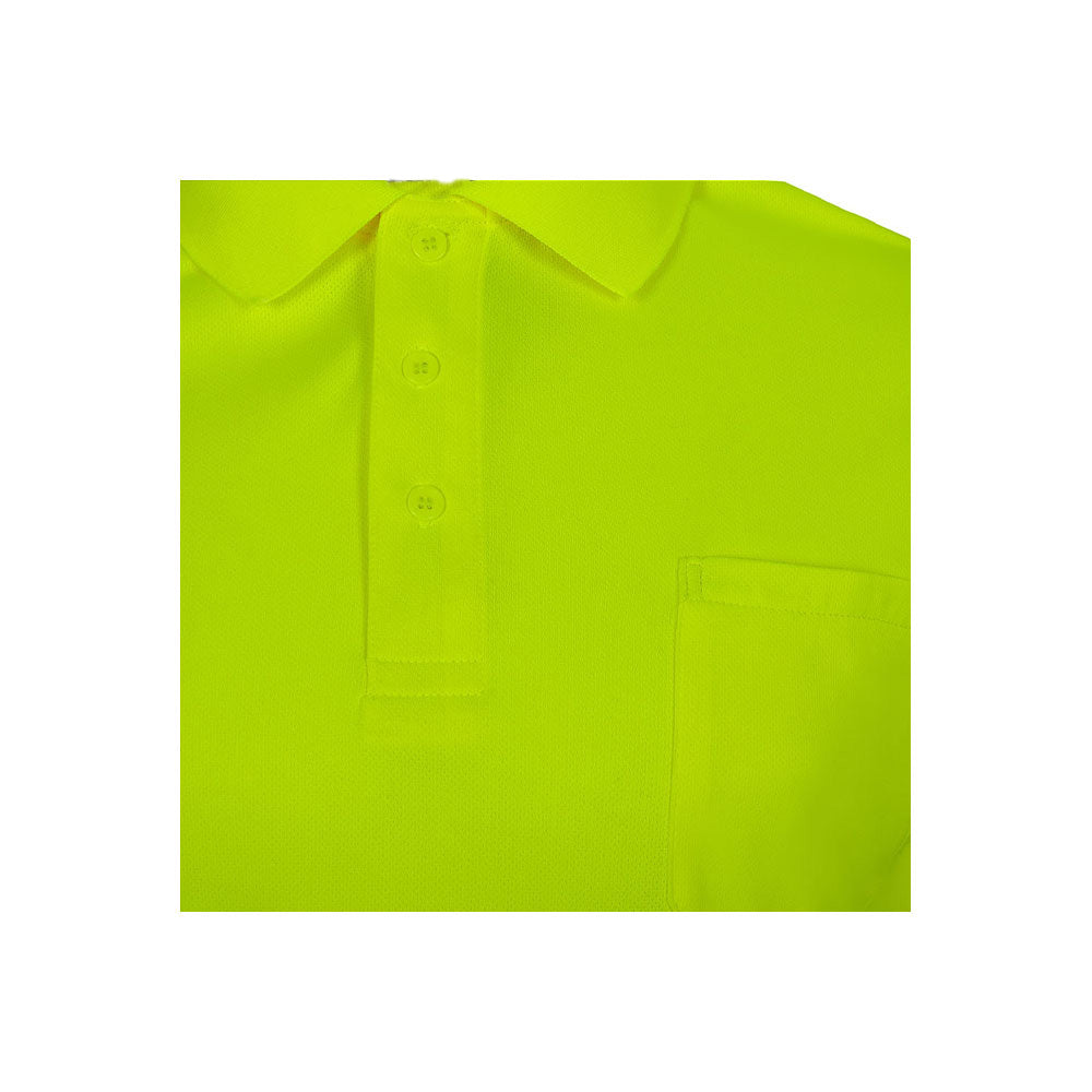 Inovação ecológica com performance industrial. O polo Jaca é a solução definitiva para empresas que procuram aliar a responsabilidade ambiental à segurança máxima. Fabricado em Micro Bird-Eye (100% poliéster reciclado GRS) de 140 g/m², esta peça não só promove a economia circular através do certificado Global Recycled Standard, como oferece um conforto térmico inigualável graças à sua malha técnica ultra-respirável.