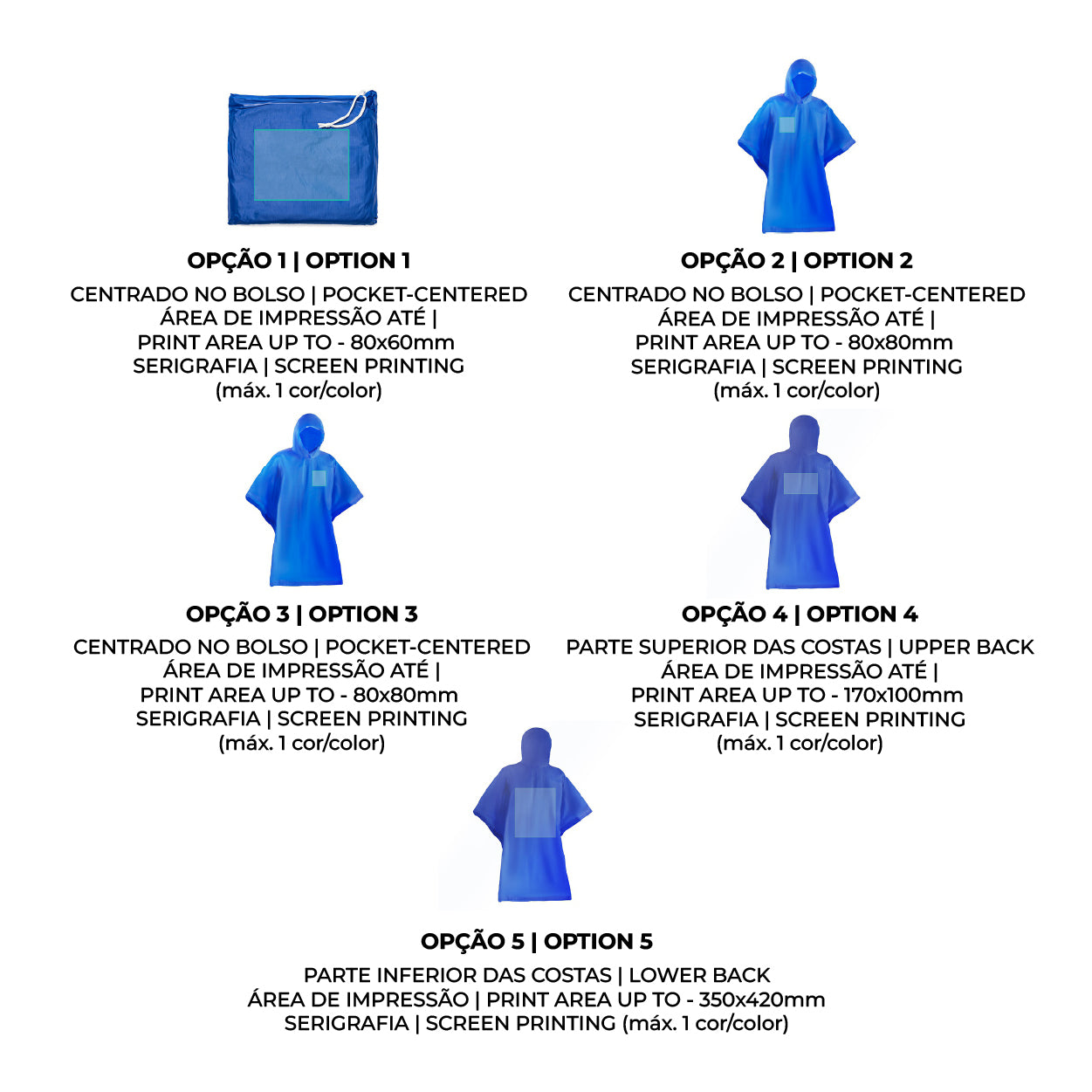 O seu design dobrável e leve, com capuz e aberturas para os braços, oferece total liberdade de movimentos. Produzido em PVC com acabamentos termo-selados e um fecho central com colchetes, garante uma proteção total contra a água.