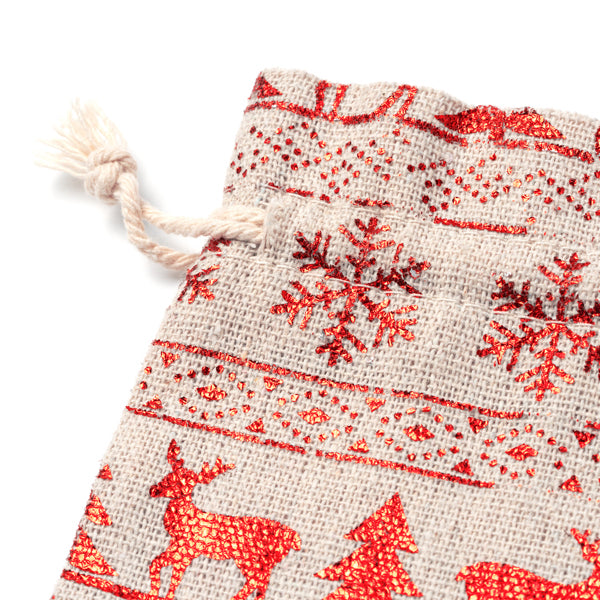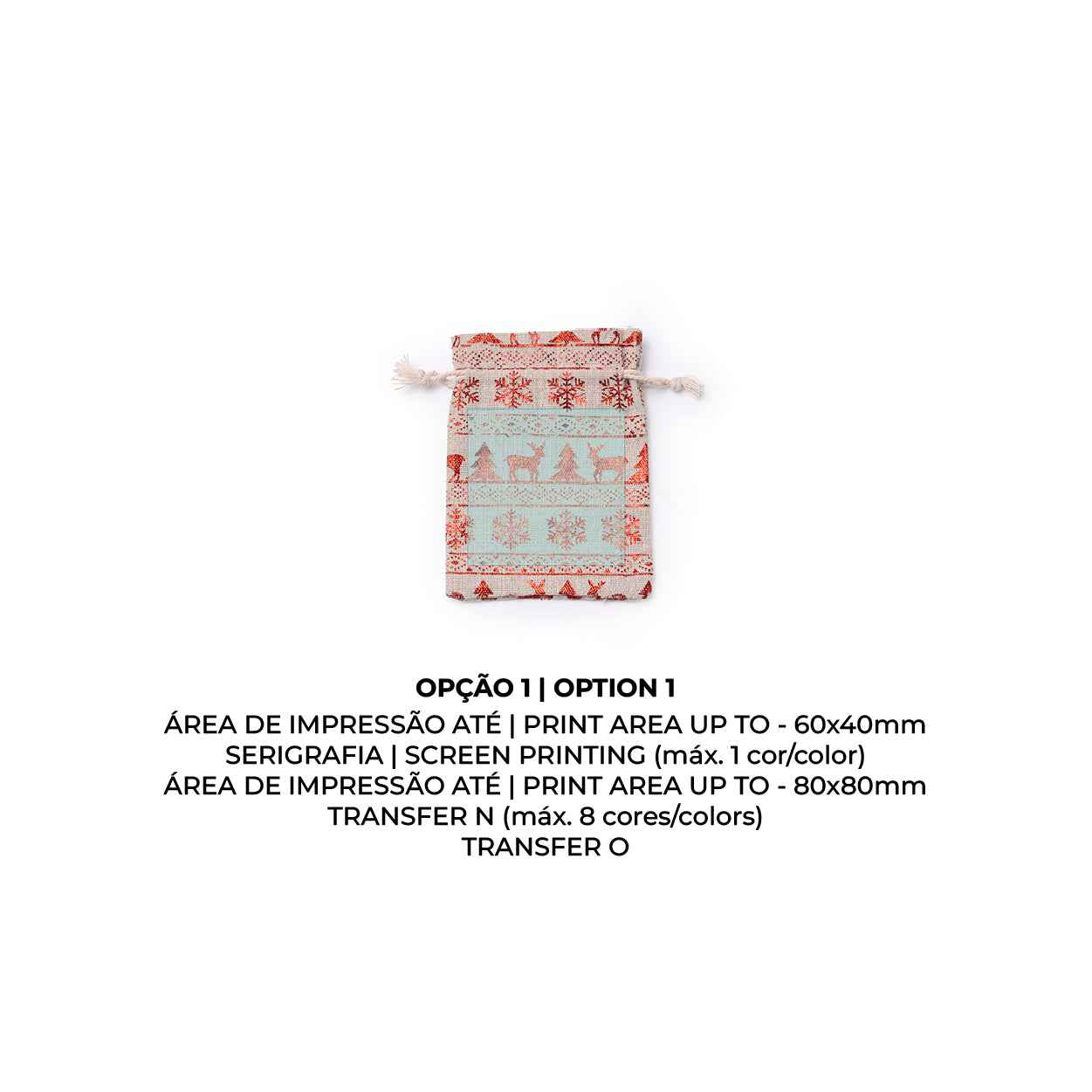 Este saco é uma excelente alternativa ecológica ao papel de embrulho descartável, pois pode ser reutilizado em Natais futuros. O seu design é totalmente decorado com motivos característicos da época, como árvores, renas e flocos de neve, garantindo que os seus presentes se destacam sob a árvore.