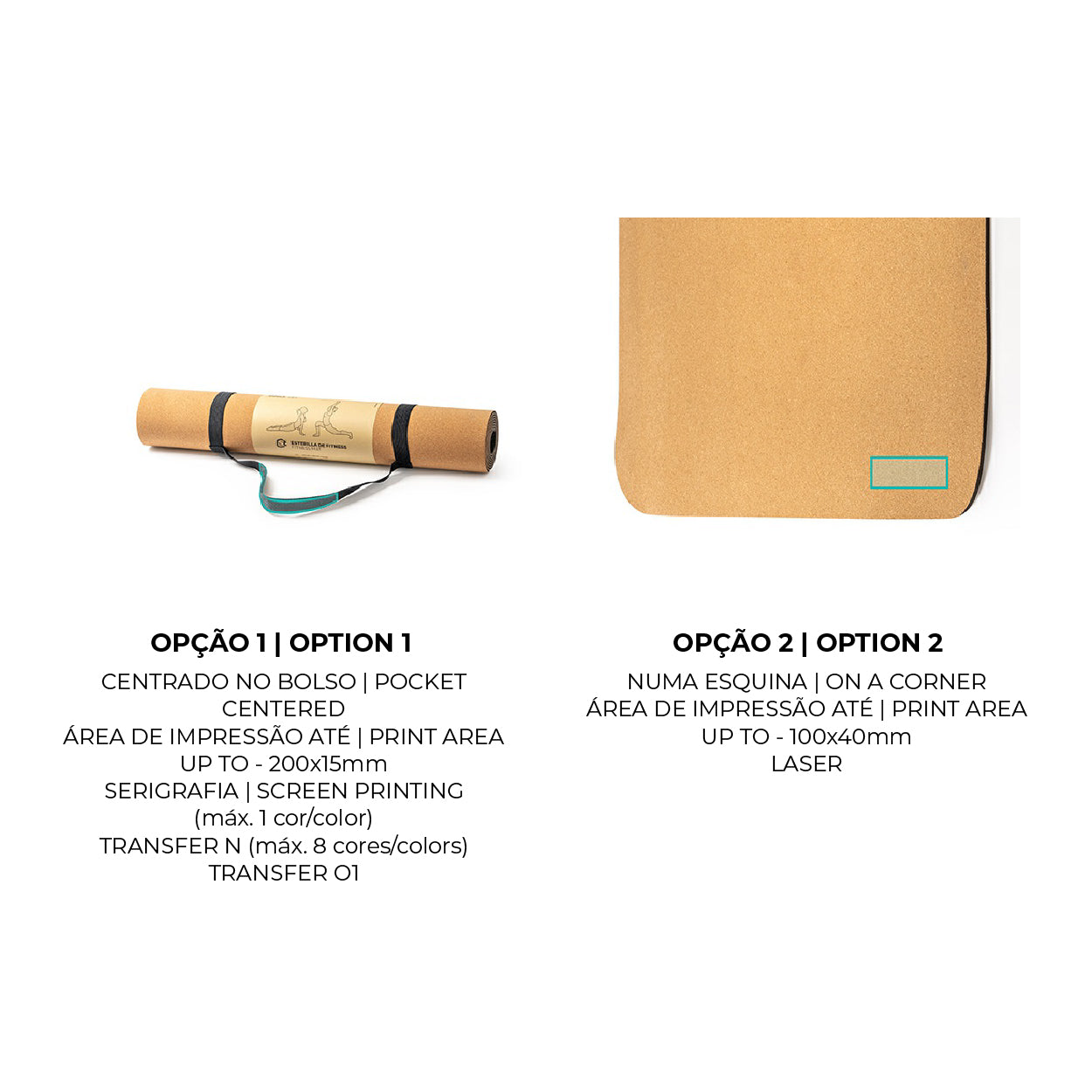 A superfície superior é feita em cortiça natural, um material renovável que proporciona uma textura agradável, é naturalmente antimicrobiano e oferece excelente aderência, que aumenta com a humidade (suor). A base possui um acabamento antiderrapante, garantindo total estabilidade e segurança durante a execução de qualquer postura.