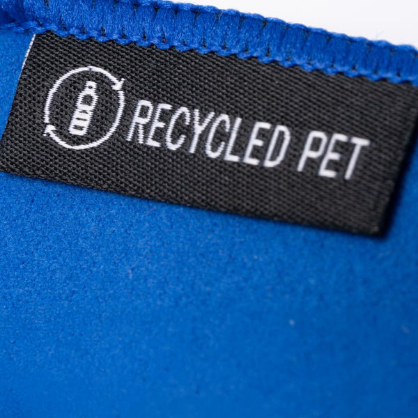O grande diferencial desta toalha é a sua composição em RPET (Poliéster Reciclado), demonstrando um compromisso com o ambiente ao reutilizar materiais plásticos. É uma toalha de microfibra leve, que, apesar do seu peso reduzido, mantém a alta capacidade de absorção e a caraterística de secagem rápida. A malha com filamentos de poliéster reforça a sua durabilidade.